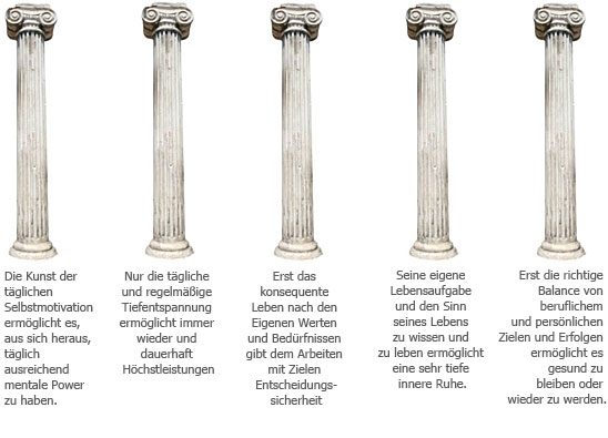 Reale Lebensqualität ergibt sich aus der Summe dieser fünf Säulen des Anwendens mentaler Strategien: